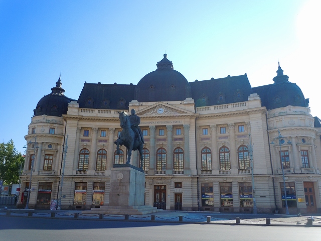最後の日はルーマニアの首都ブカレスト観光。 ここは革命広場。89年のルーマニア革命はここから始まりました。この建物はブカレスト中央大学図書館。建物は1893年に完成し1895年3月4日開館。1989年のルーマニア革命の間に火事が起こり、500,000冊の本が3,700冊の写本と共に焼けました。1990年の4月に修理と近代化が始まり、2001年11月20日に再オープンしました。