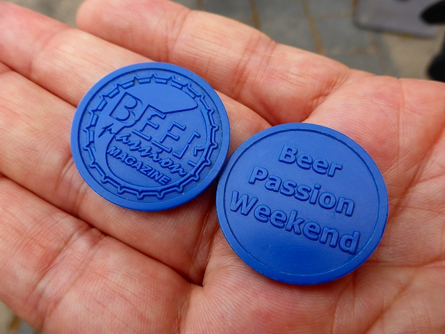 We go round with token with 2 euro per 1 piece in the site. We can drink a glass of beer by a token. Masaki bought five tokens. He would drink a liter beer ! |