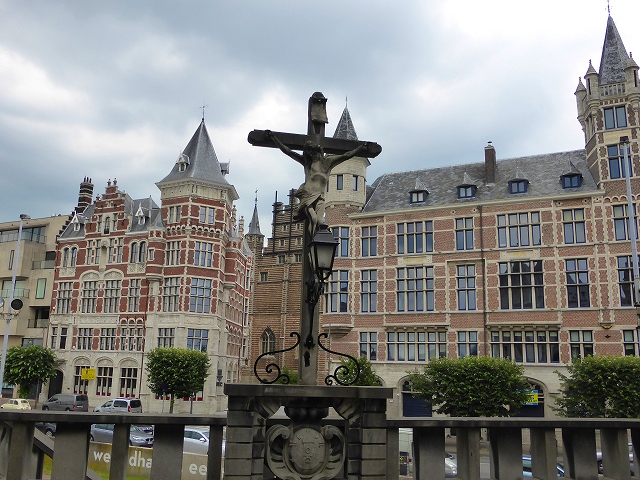 After Masaki drinks beer, let's stroll about the streets ! "Steen castle" stands along the canal. It is a medieval fortress in the old city centre of Antwerp. Built after the Viking incursions in the early Middle Ages as the first stone fortress of Antwerp, Steen Castle is Antwerp's oldest building and used to be its oldest urban centre. |
