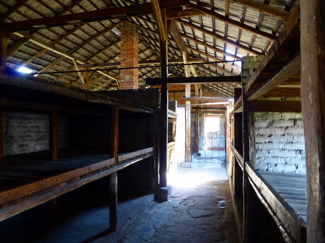 「アウシュヴィッツ・ビルケナウ強制収容所」 ずらりと並ぶ収容棟。今は博物館の展示室になっています。収容所はホロコーストの最も強力な記念碑となり、1947年にポーランドはアウシュビッツ第1、第2を博物館とし、1979年にユネスコ世界遺産となりました。