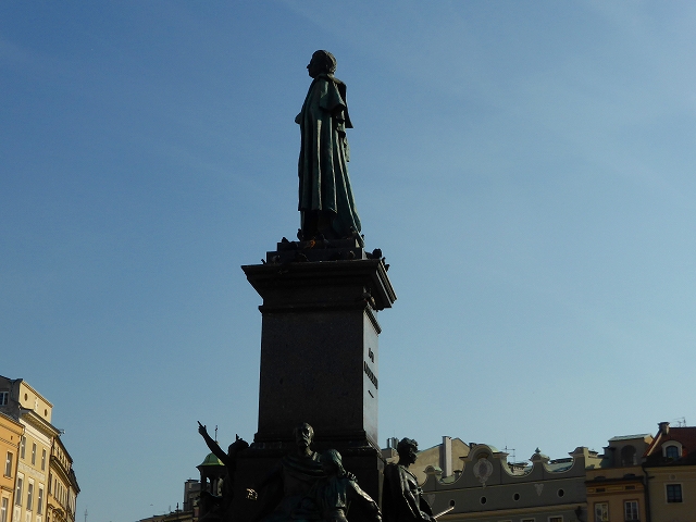 中央広場「詩人アダム・ミツキエヴィッチの像」 彼はポーランド、リトアニア、ベラルーシの国民的詩人です。ポーランド・ロマンチシズムの主要人物としてポーランド三大詩人に数えられており、ポーランドの最も優れた詩人とされています。