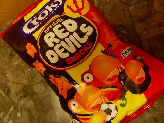 スーパーではコーラの缶を使ってこんなコーナーができていました。ベルギーチームの愛称「レッド・デビル」です。
