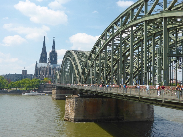 ブリュッセルからオランダを通りドイツのケルンへ行ってきました。 車で2時間です。 ライン川にかかるホーエンツォレルン橋の先には世界遺産「ケルン大聖堂」。