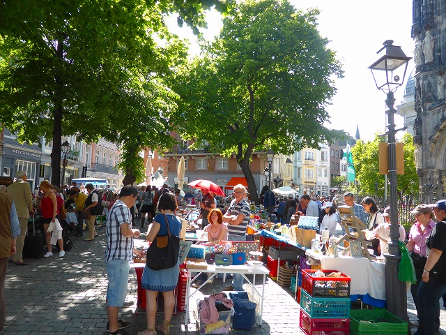 「アーヘン大聖堂」の前では蚤の市が開かれていました。