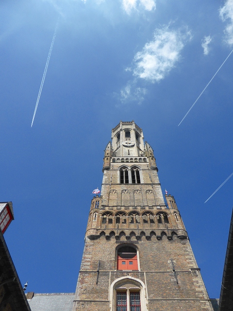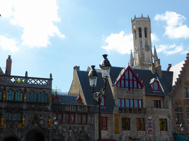 マルクト広場にある「鐘楼」(世界遺産)。366段のらせん階段をのぼるとブリュージュの町が一望できます。鐘楼は1240年頃マルクト広場に加わりました。1280年の大規模な火災の後、鐘楼は大部分が再建されましたが、市の文書保管所は永遠に失われました。