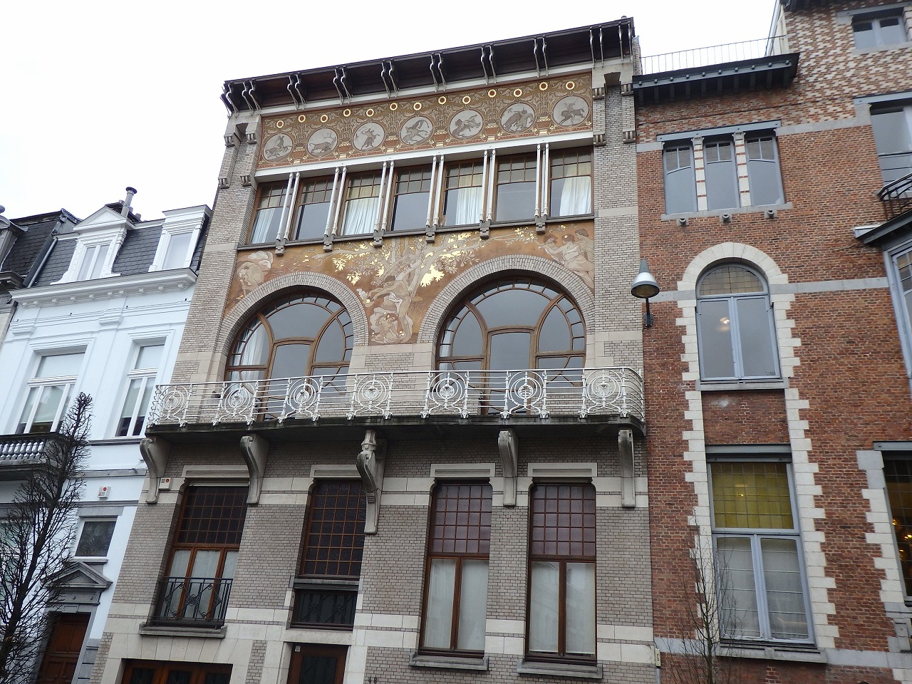 オルタの弟子ストロヴァン最高傑作といわれ、1901年から03年にかけて建てらています。左右に並ぶ新しい建物とは明らかに違う雰囲気。2010年から11年にかけて完全に修復されました。