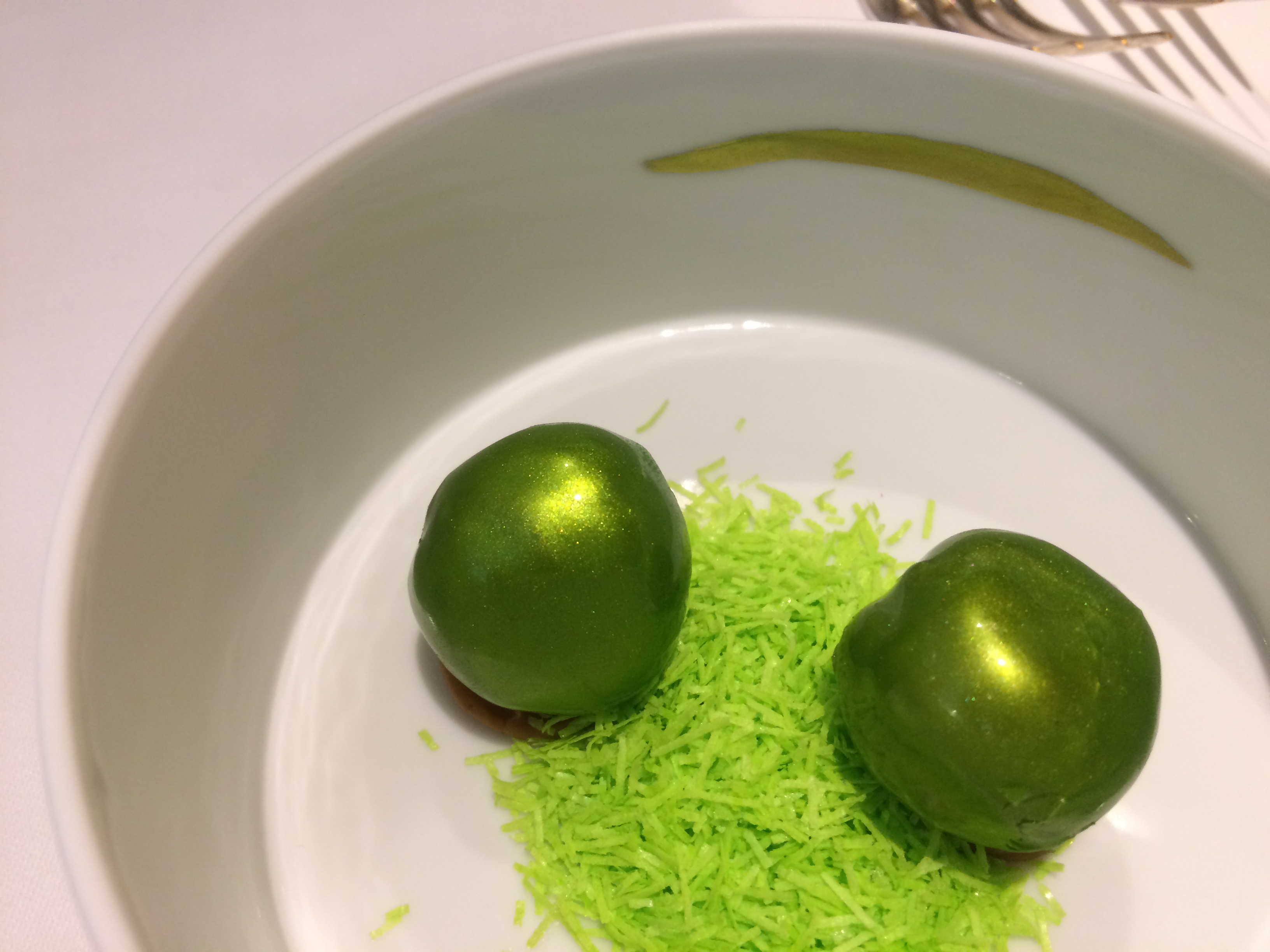 This surprising green dish is a foie-gras. It was nice. |