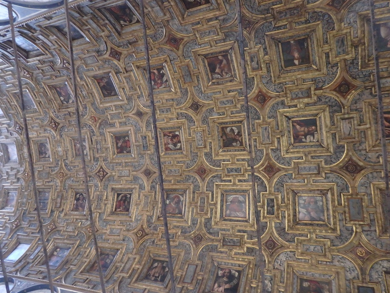 「サンタ・マリア・デイ・ミラーコリ教会」 アーチ形の天井は50の格子に区切られ、預言者などを描いた絵画で覆われています。