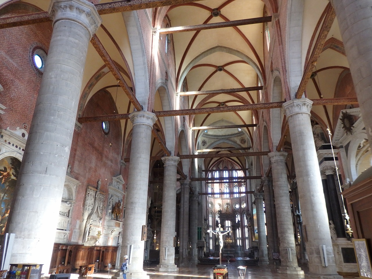 "Santi Giovanni e Paolo". The inside of the church. The vast interior contains many funerary monuments and paintings. |