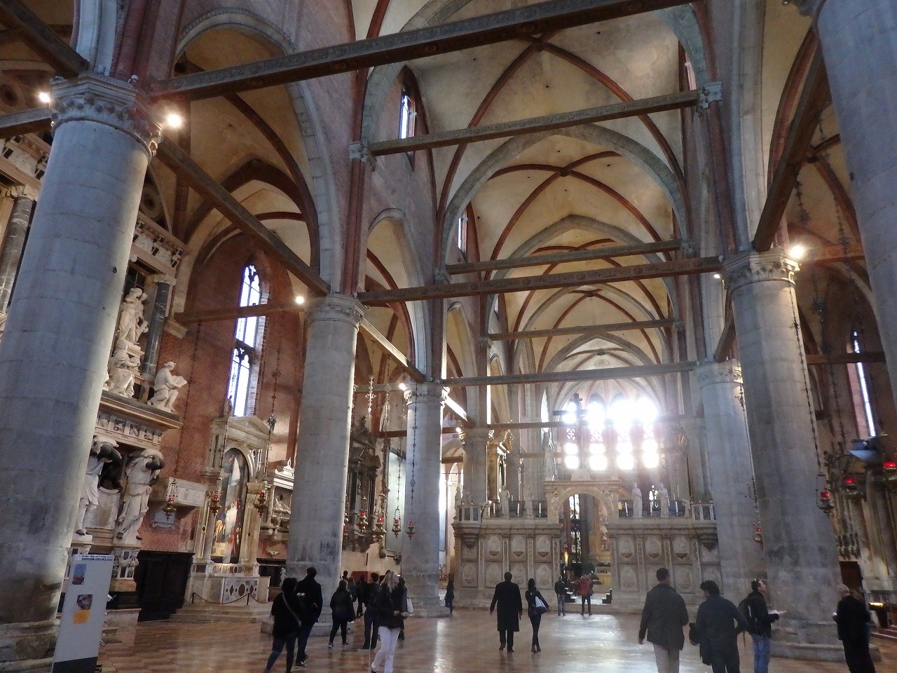 「サンティ・ジョヴァンニ・エ・パオロ聖堂」 教会の中。広大な内部には多くの埋葬者の記念物や絵が飾られています。