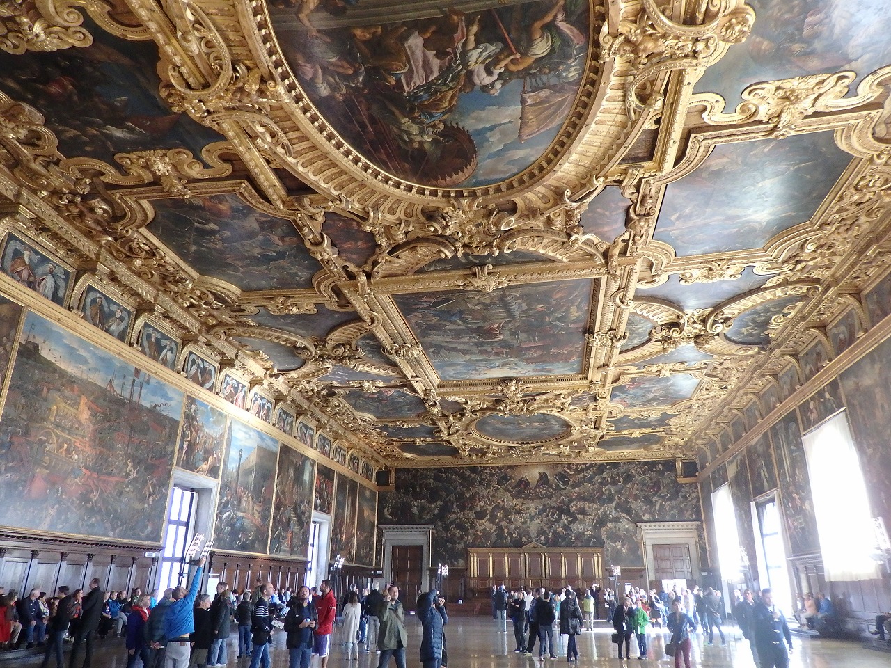 「スクオラ・グランデ・ディ・サン・ロッコ」 ティントレットが1564年から87年までの20年以上費やして完成させた絵画が並びます。天井は旧約聖書、壁は新約聖書の場面が描かれているそうです。