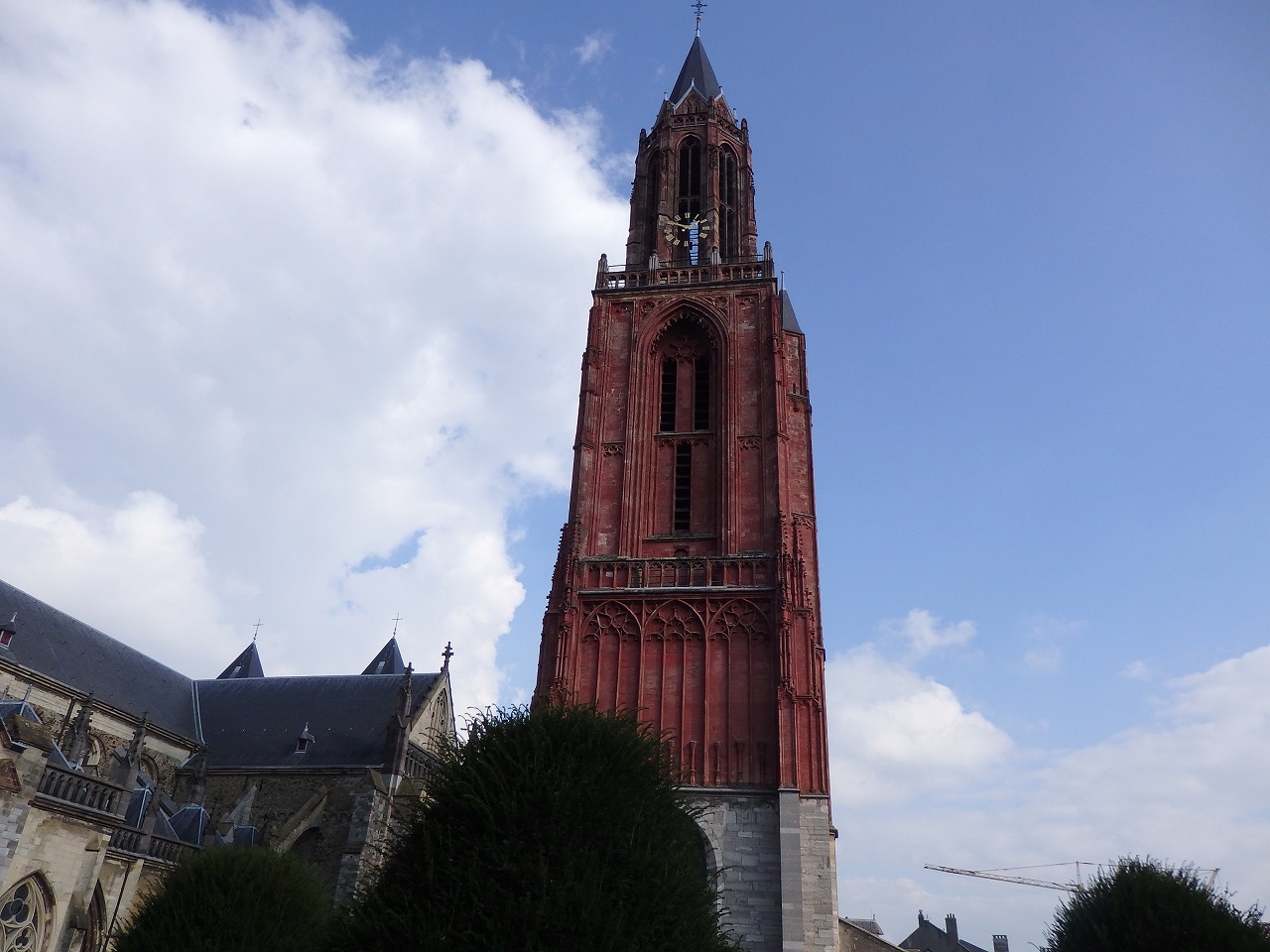 "Sint-Janskerk" It is located just south of "Saint Servatius Basilica". Built in 1632, it is said that a distinctive red tower was dyed with the cow blood once. |