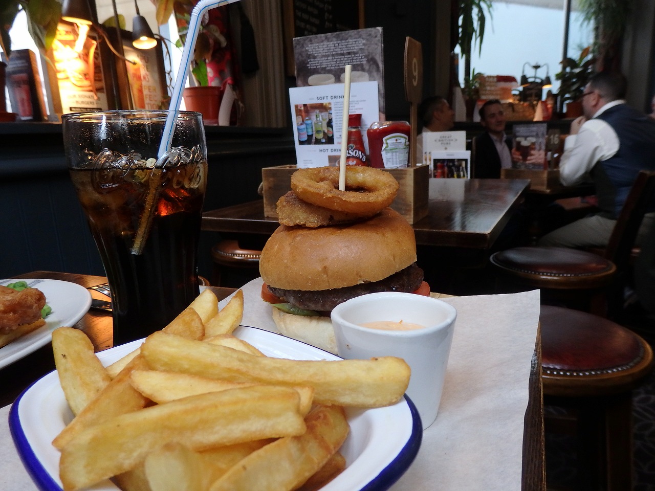 学校前のパブでランチ。フィッシュアンドチップス