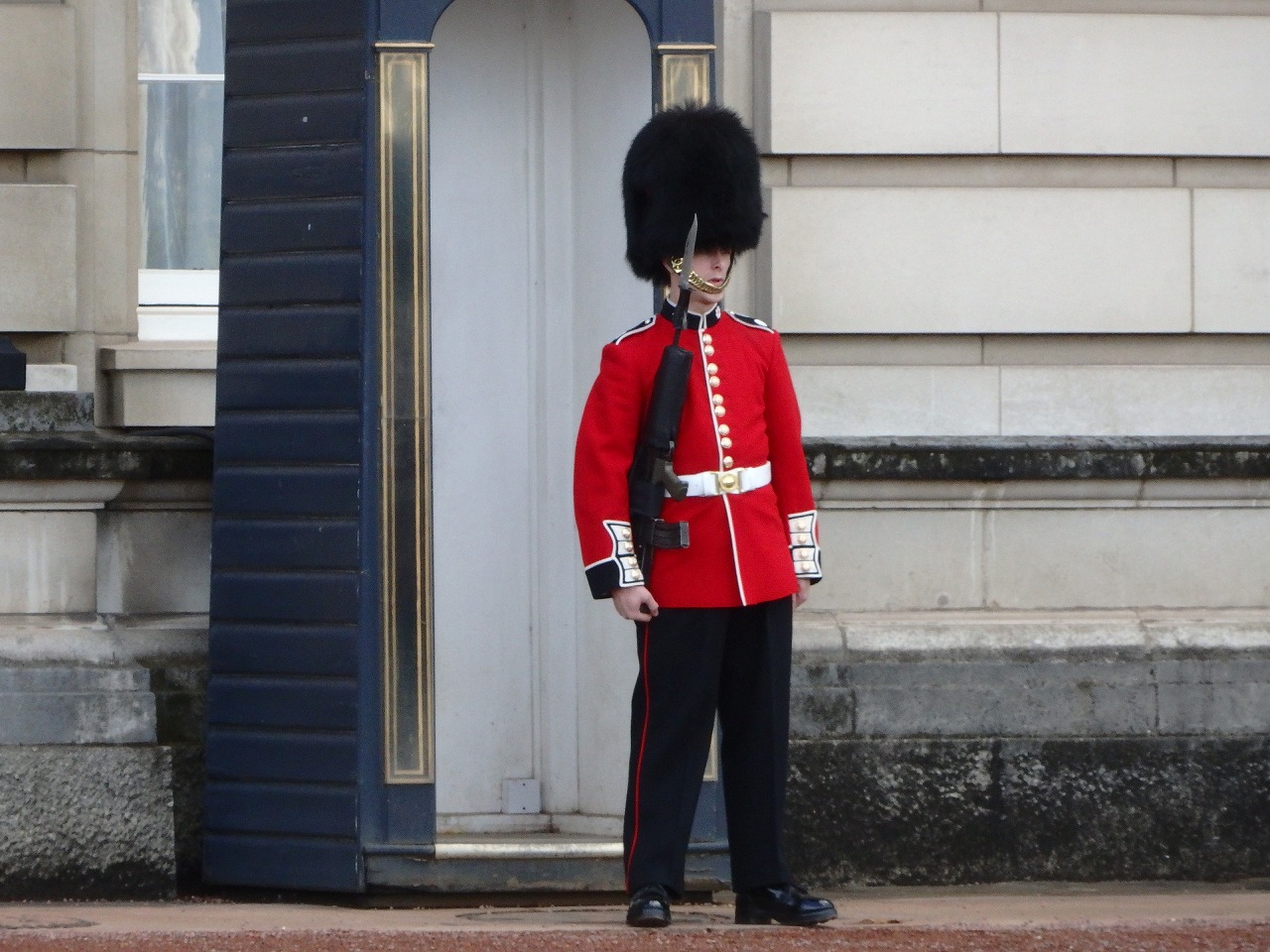 「バッキンガム宮殿」 衛兵さん。今日は交代式のない日でした。