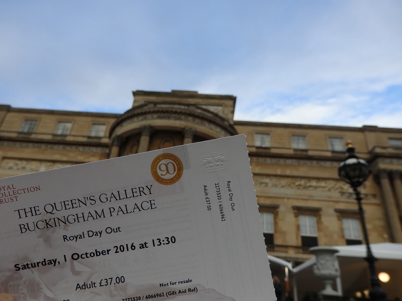 「バッキンガム宮殿」 こちらがチケット。「ロイヤル・ミューズ」も今日から1年間このチケットが使えます。