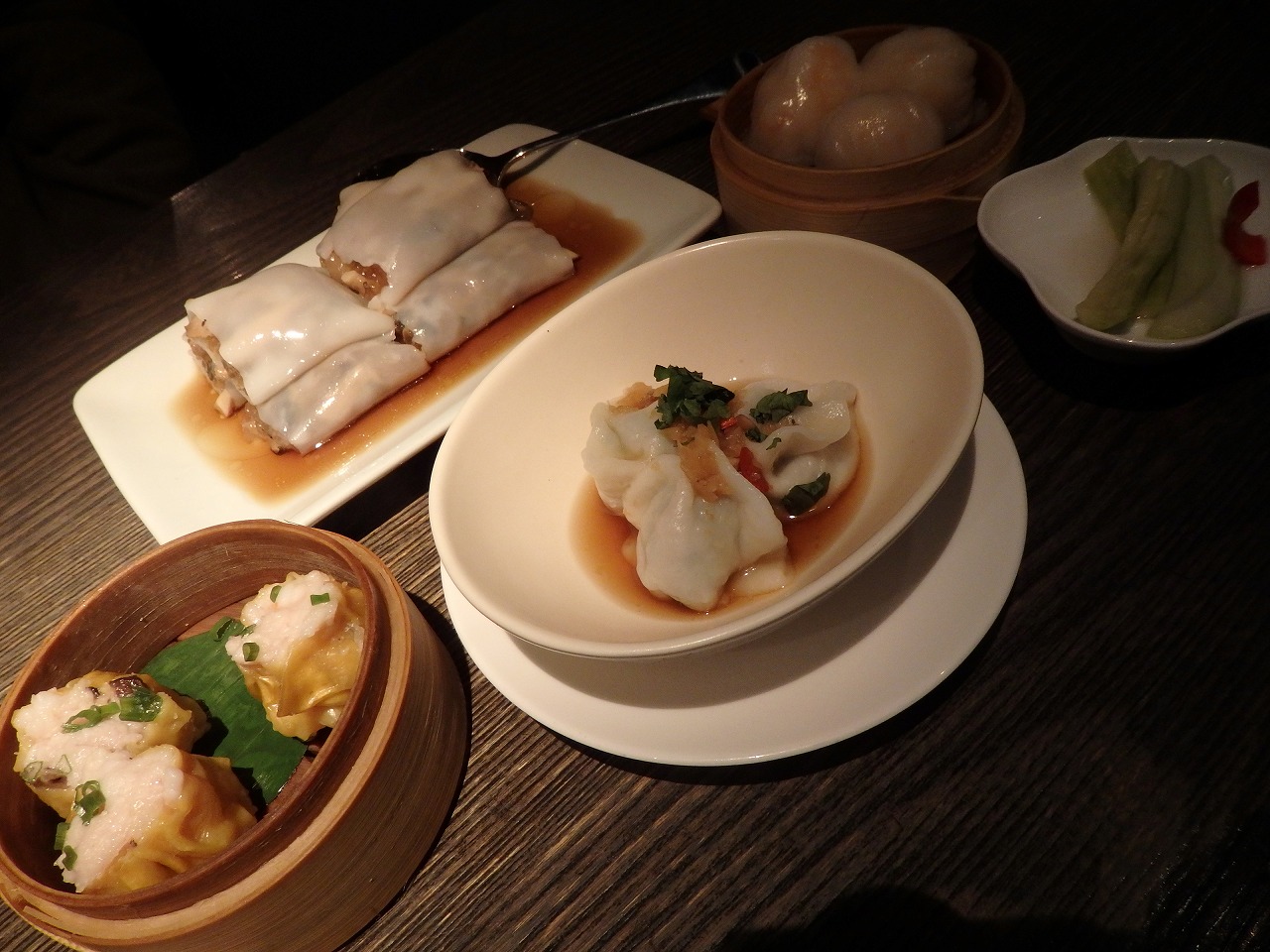 お夕飯はミシュラン一つ星。ソーホーにある中華レストラン「唐茶苑 YAUACHA」へ。 鹿肉まんも見た目からしてちがうね。奥に見える棒々鶏もとーってもおいしかった。