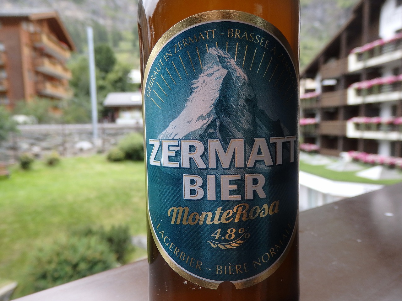 「ツェルマット・マッターホルン Zermatt Bier Matterhorn」 スイスのツェルマット醸造所の製品。明るい銅色で泡立ちはなし。麦芽、コーン、ホップの香り。麦芽の甘さがあり本当の苦さはありません。アルコール度数は5%。