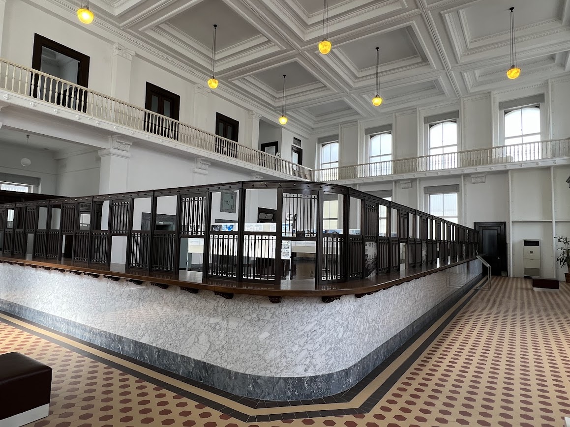 大正建築にふれることができる「山口銀行旧本店(山口県指定有形文化財)」。創業130周年を記念してオープンした資料館らしい。 |