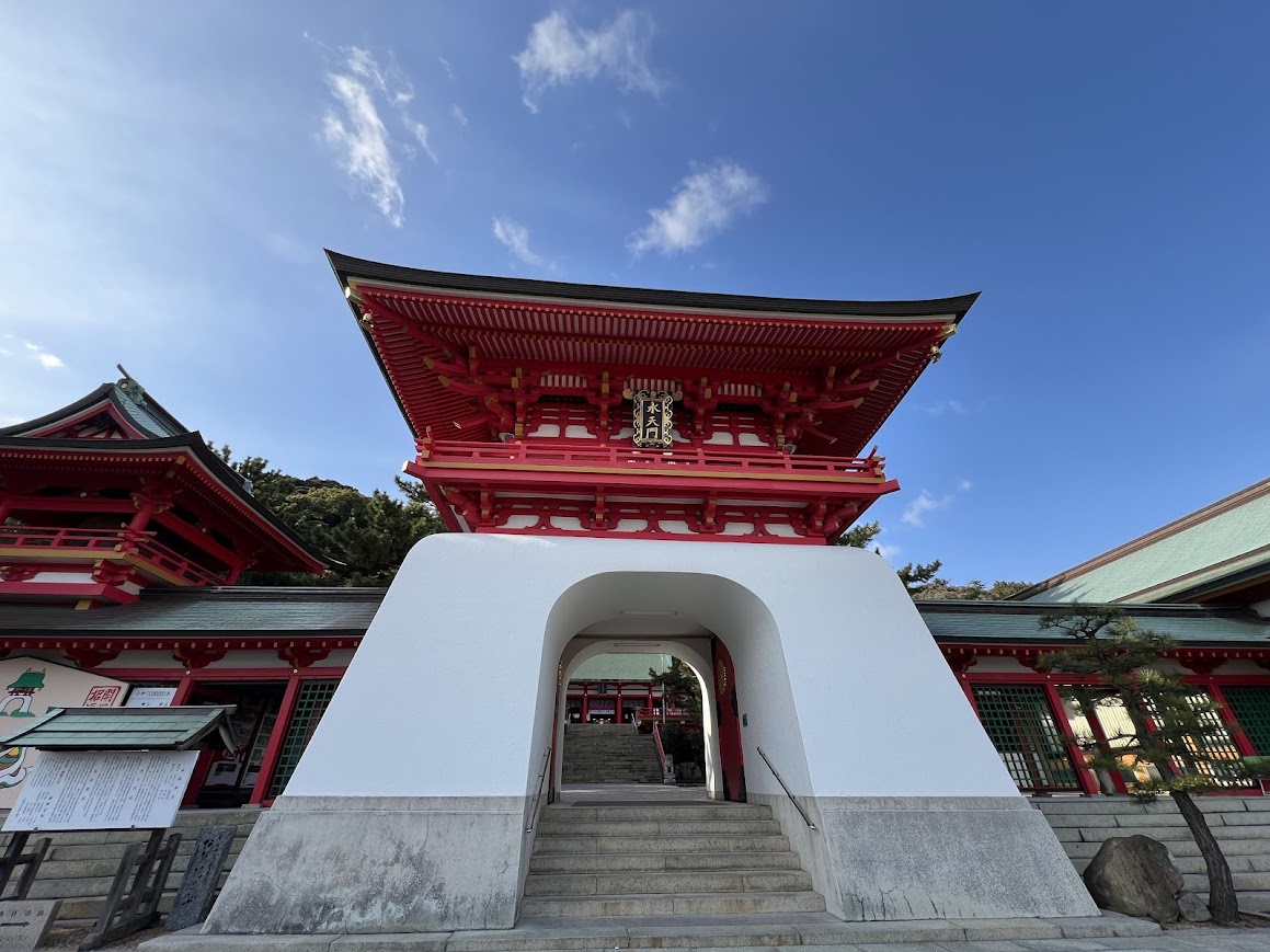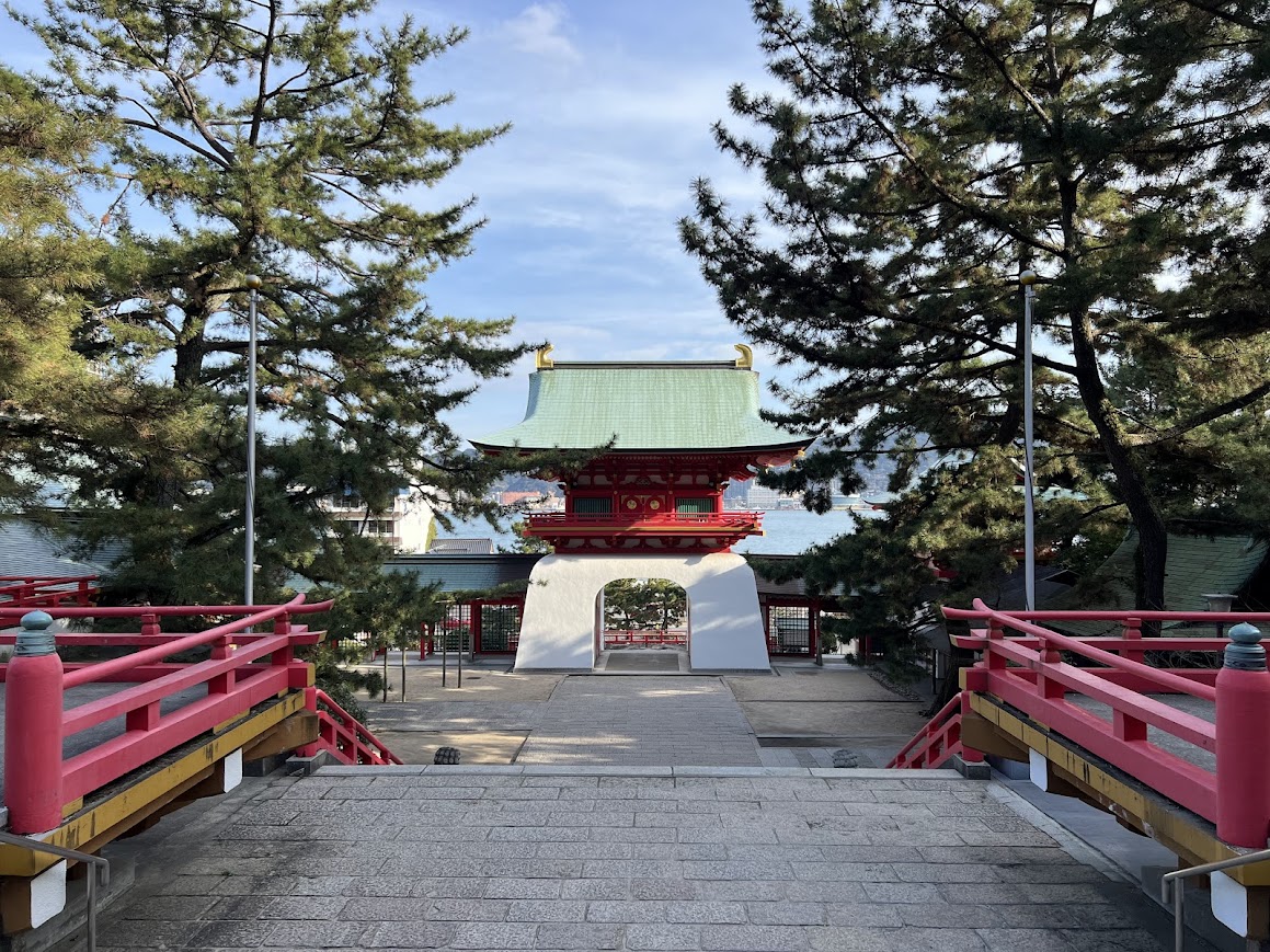 九州最北端の神社。関門海峡に面していて、潮の満ち引きを司る「導きの神様」とも呼ばれているそうです。 |