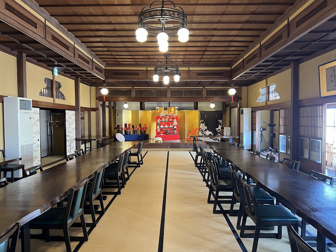 今はふぐ料理のお店が入っています。(満席でした)広間は無料で見学できてかつての高級料亭の雰囲気を感じられます。 |