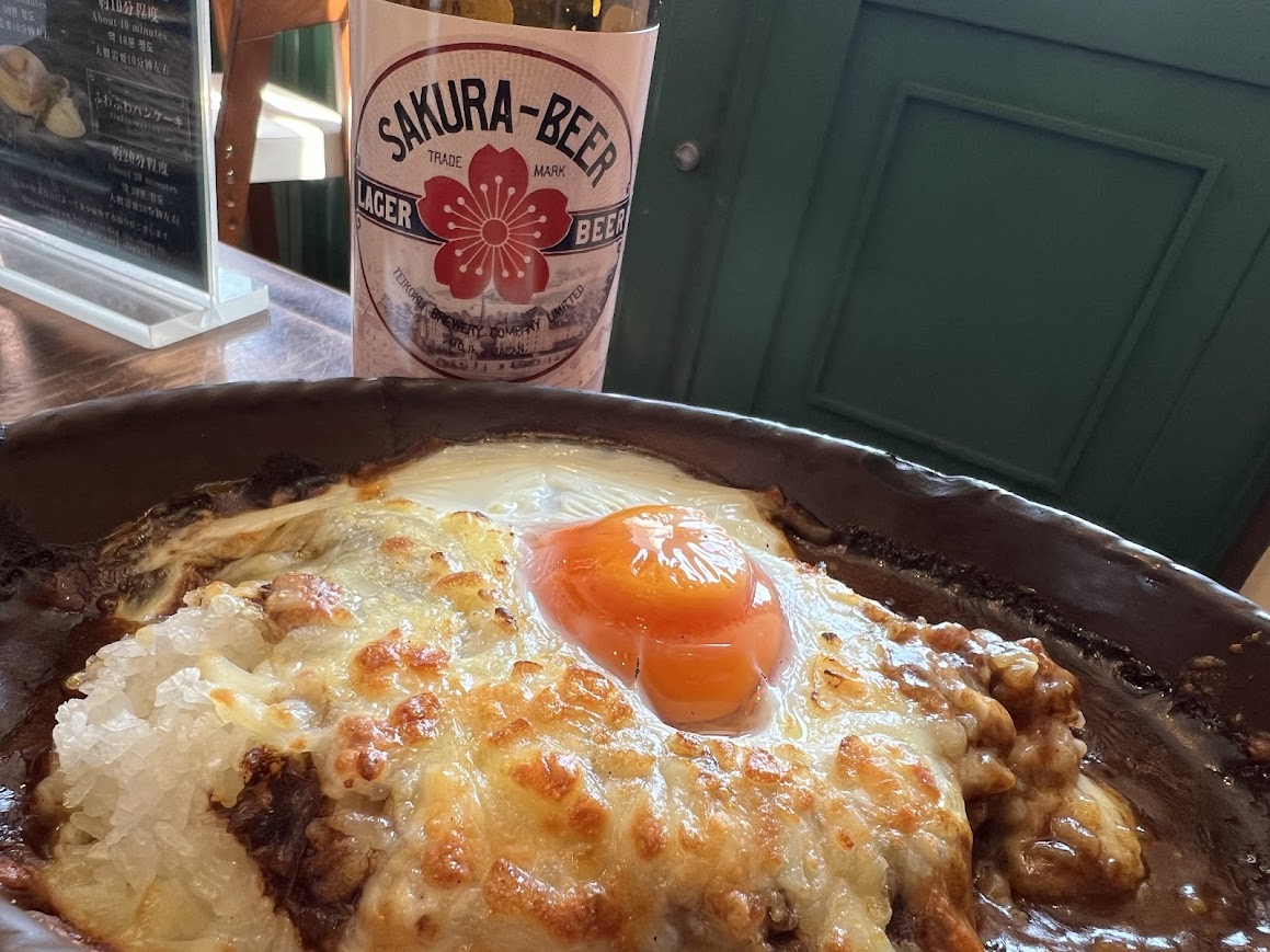 門司名物の焼きカレーをランチに。 有名店はどこも当然行列ができていました。仕方ないので覚悟を決めて並ぶことに。 焼きカレーは見たままの味でした。ビールは大正2年に門司で誕生したビール。現在は復刻されて飲めるようになったそうです。 |