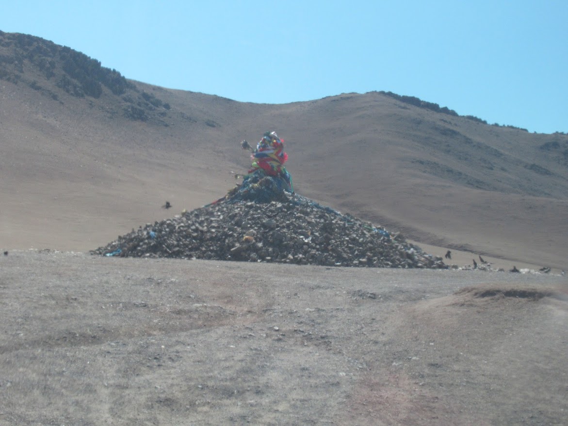 大平原の中に突然現れる「オポー」は一種の標柱であり、チベット仏教の祭礼が行われるところでもあるそうです。 |