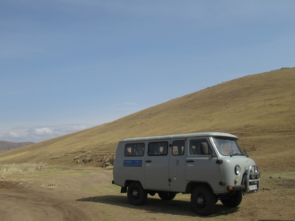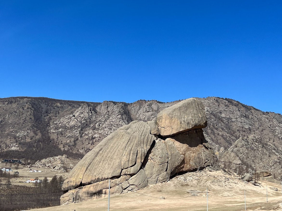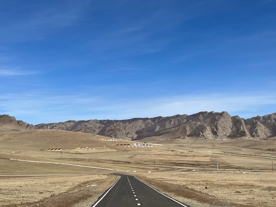 テレルジ国立公園へ向かいます。ただただ広くて真っ平。緑に覆われた大地を思っていたらモンゴルは5月ではまだ冬なんだそう。緑の大地になるのは7月ごろからなんだって。ちゃんと調べて行かなきゃー |