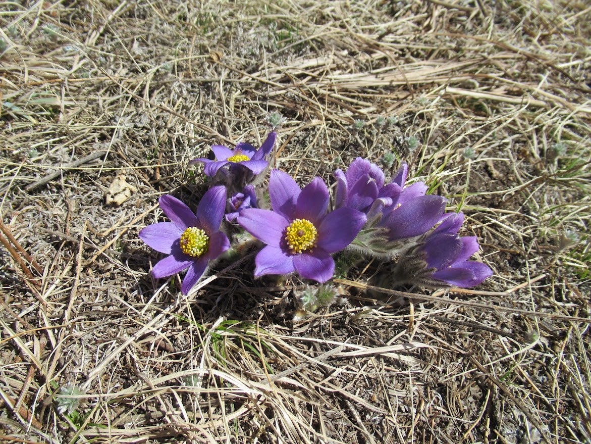 まだまだ緑の草原にはほど遠いけど、可愛い花はいっぱい咲いてたよ。翁草かなぁ。 |
