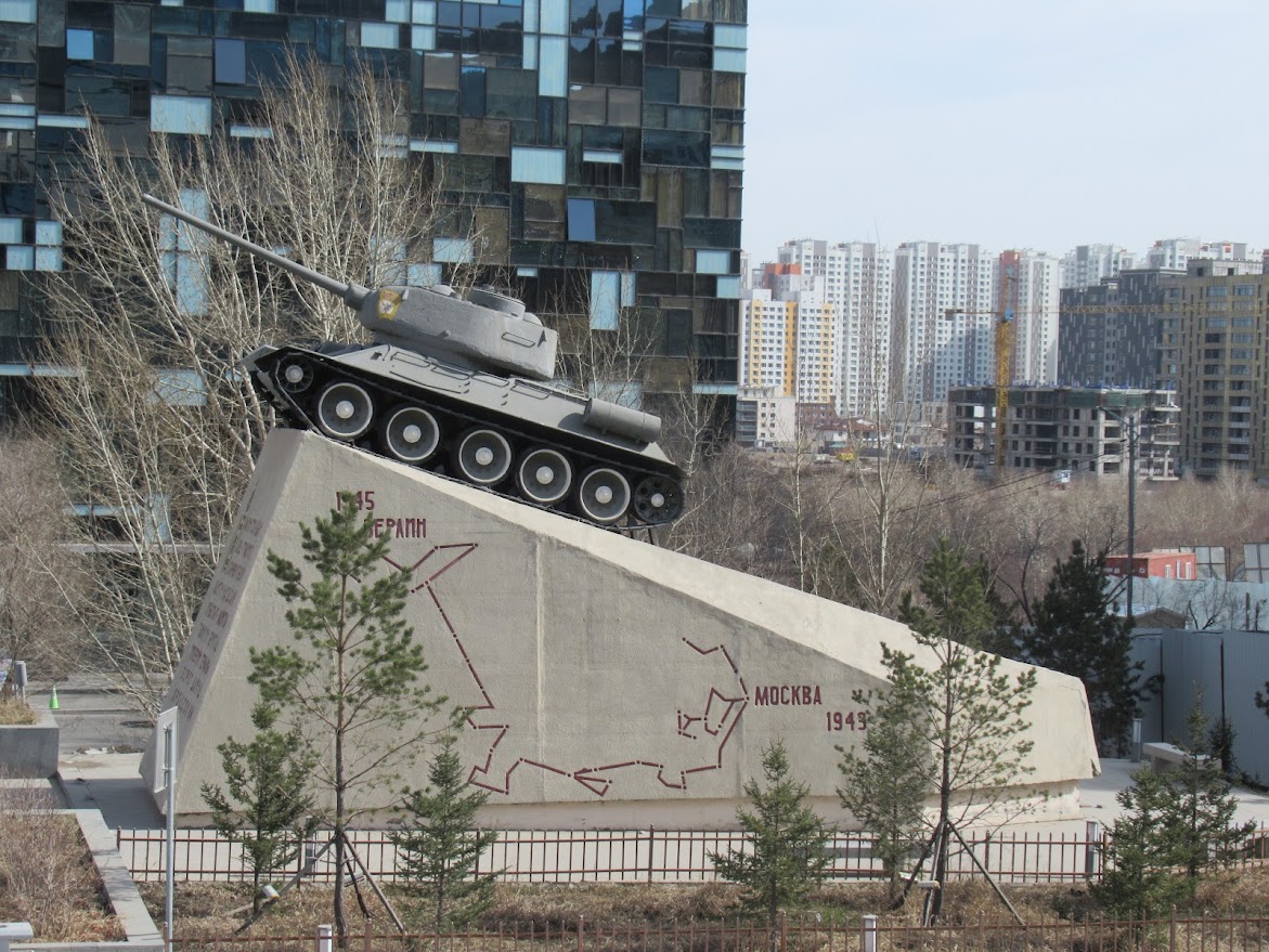 戦車のモニュメント。モンゴルと旧ソビエト連邦の絆と平和のシンボルです。 |