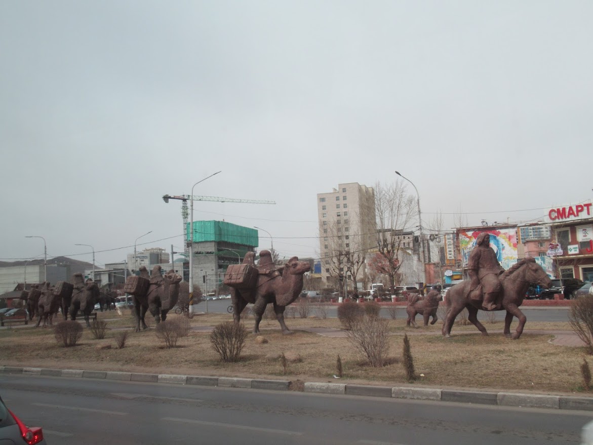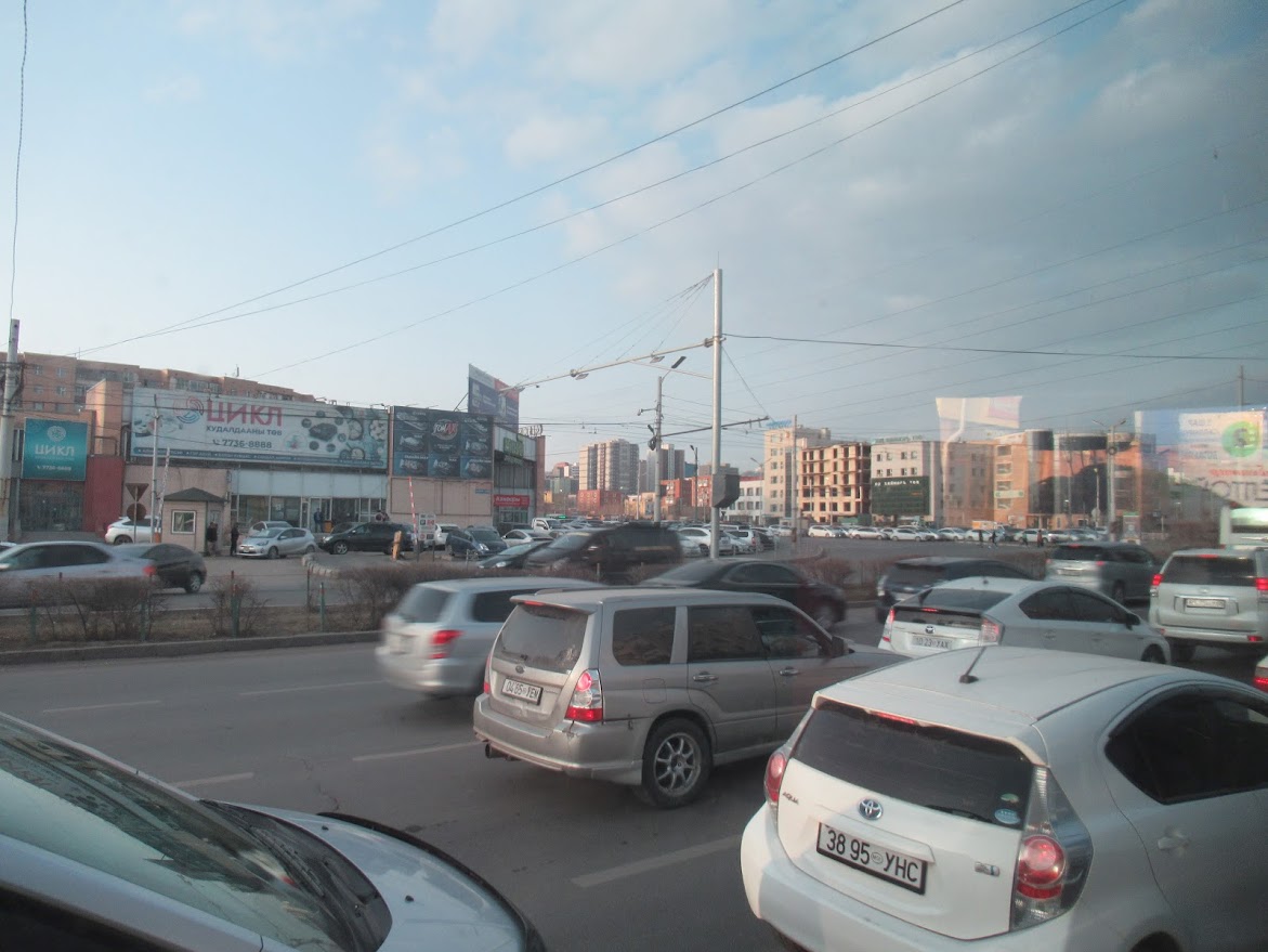 なーんにもない草原からウランバートルに戻ると大渋滞。街中を走る地下鉄などがないので、いつも大渋滞なんだそう。国はこんなに広いのに人口の半分がウランバートルにいるんだって。 |