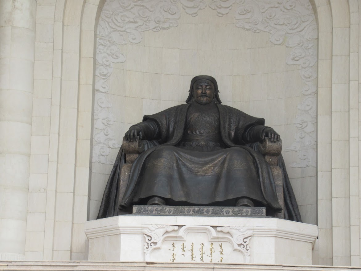 国会ッ議事堂正面のど真ん中にモンゴル人の誇り、黒い巨大なチンギスハーン像。 |