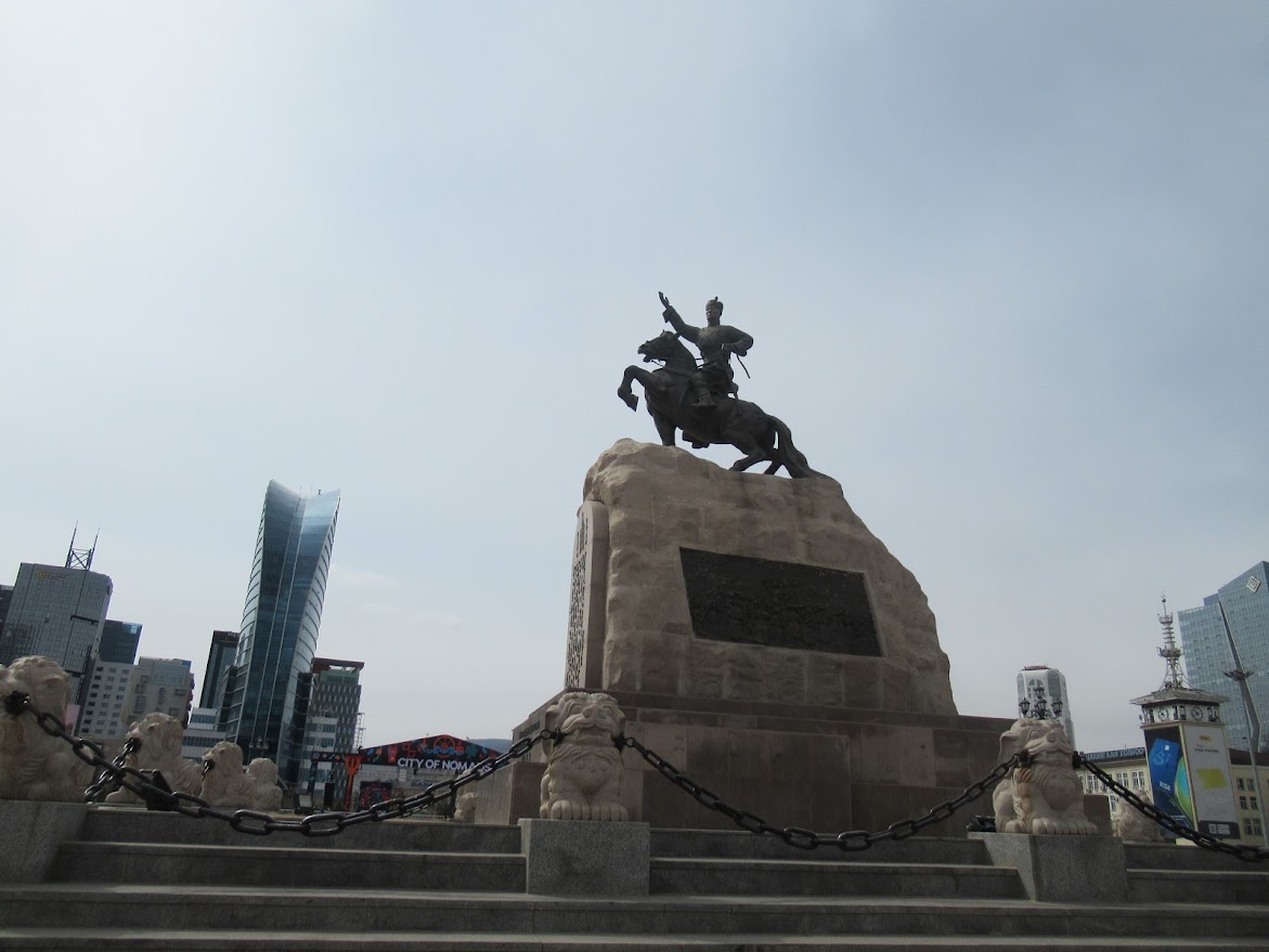 近代モンゴル国のいしずえを築いた革命家であるスフバートルの騎馬像。 モンゴル人民革命の父なんだって。 |