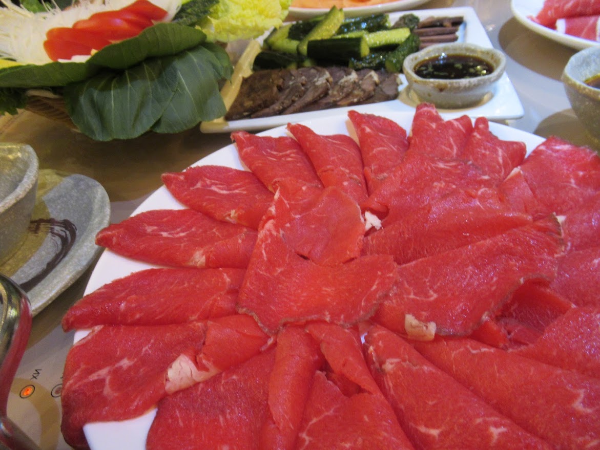 ごまだれが美味しかった。お肉は赤身のみ!シメはうどんみたいな麺。 |