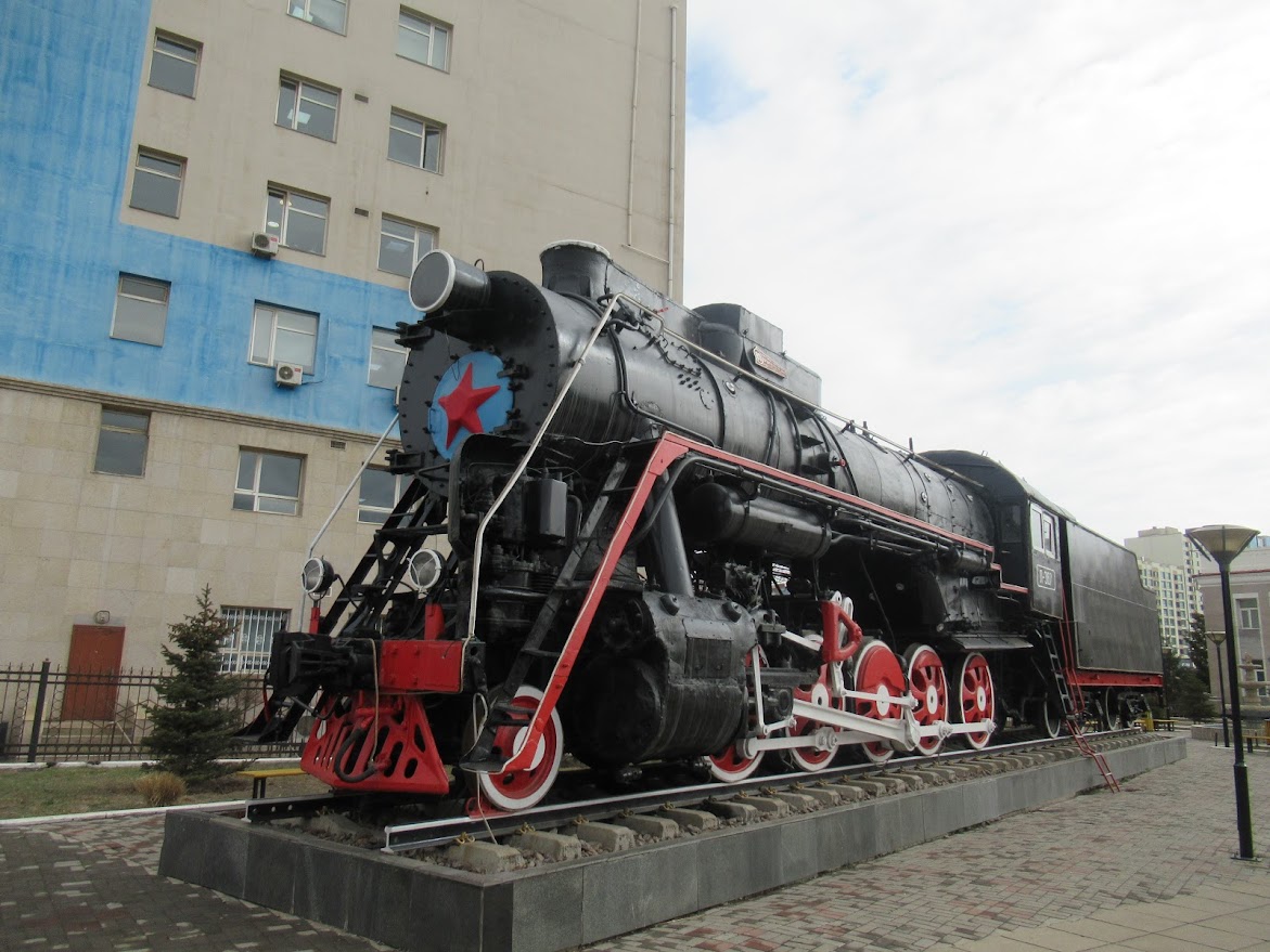 ホームにあるSL。 ソ連時代に活躍していたであろう機関車。 |