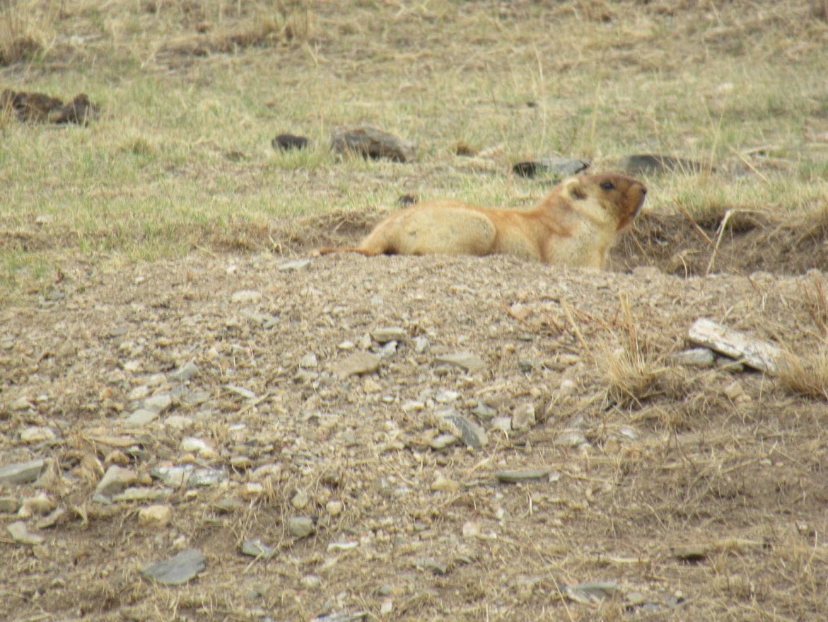 マーモット。穴からかわいい顔をだしてくれています。たくさん見たんだけど、すぐに穴の中に隠れてしまうので、いい写真がとれなかった。すっごくかわいい。 |