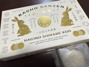 仙台銘菓萩の月の限定品らしい。萩の月フアンとしては買わなきゃーと買ってみましたが、いつもの萩の月がいちばんという結論になりました。 |