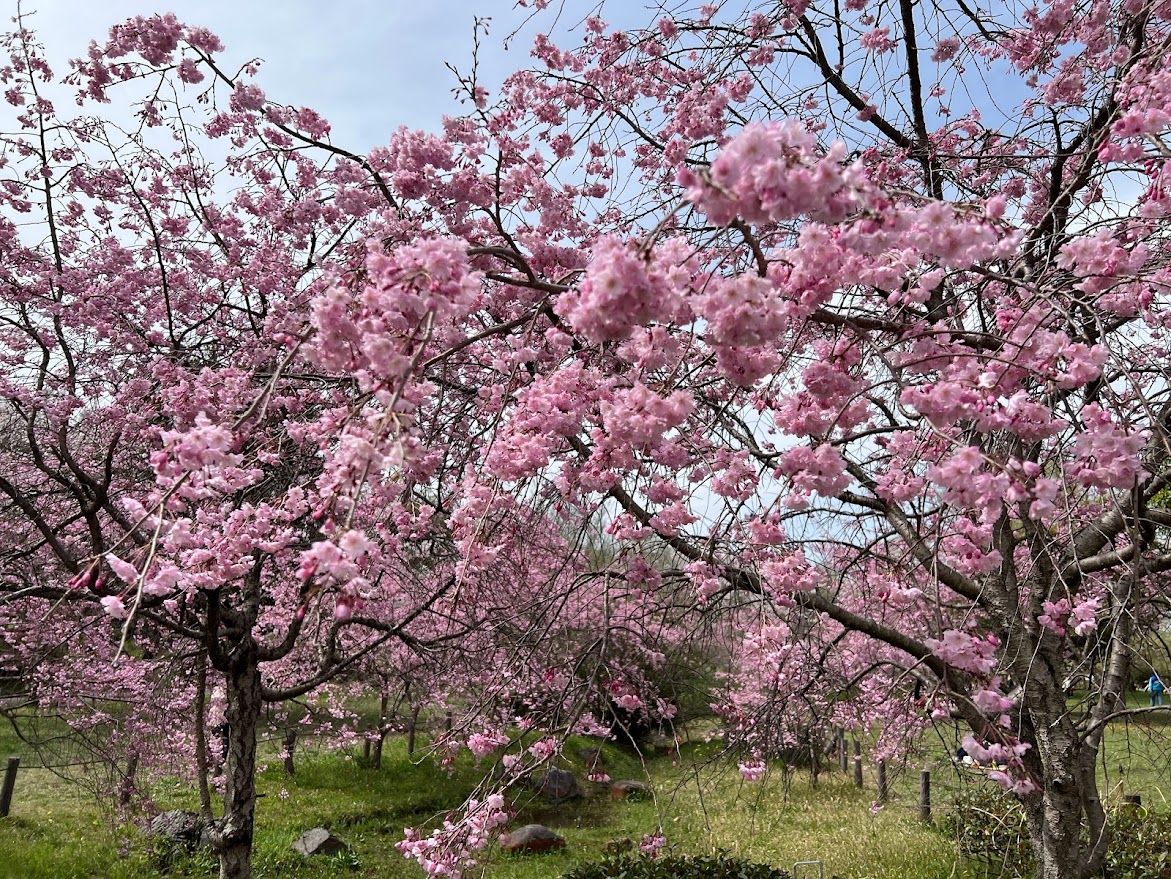 「桜の園」 平和公園の並木もきれいなんだけど、ひろーい「桜の園」は大のお気にいり。コロナの時はホントに貸し切りだった。 |