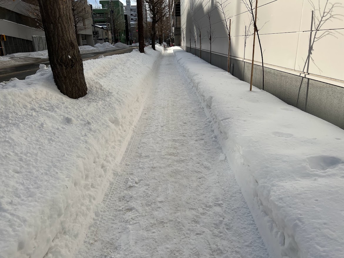 天気もいいし、バスに乗るのも今ひとつわかんないから歩くことに。意外に滑らず歩けます。 |