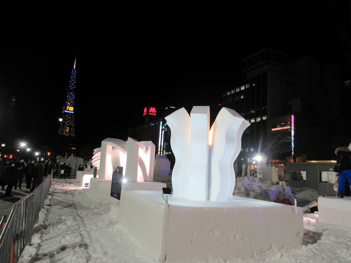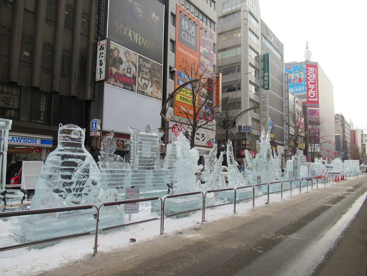 朝、ススキノ会場へ。ここは氷像が並んでいます。 |