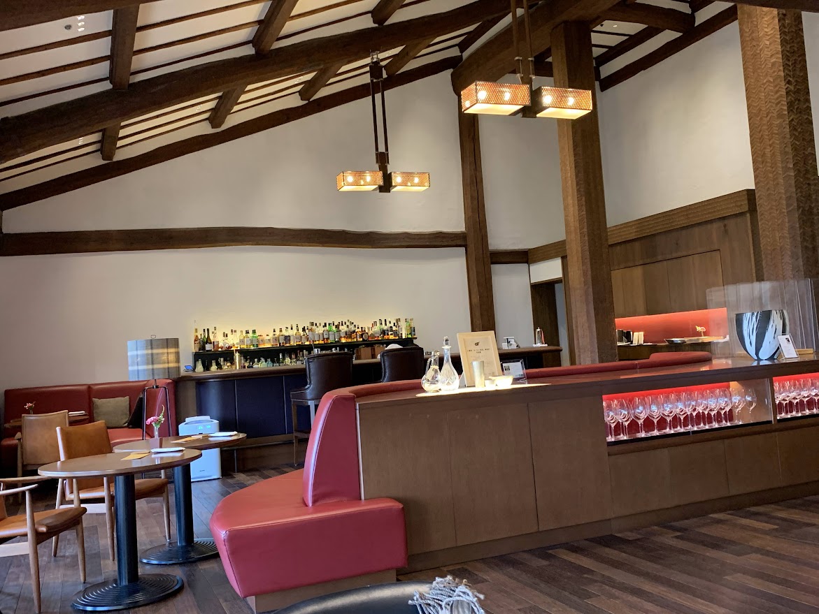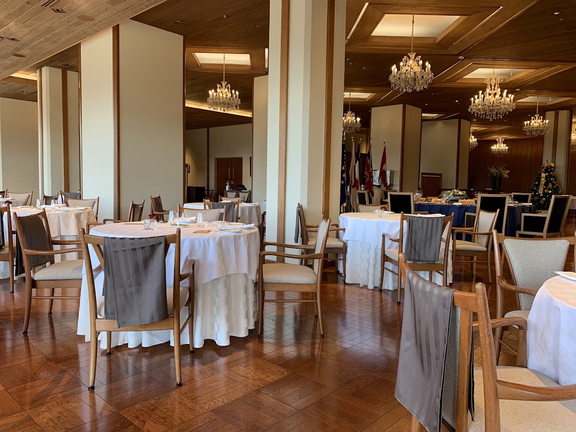 メインダイニングでランチ。 ここはサミットの舞台と言うだけでなく、山ア豊子の「華麗なる一族」の中で万表家が毎年お正月を過ごし、食事をとるレストラン。ぜひ行ってみたかった。頑張って予約したのにがらがら… |