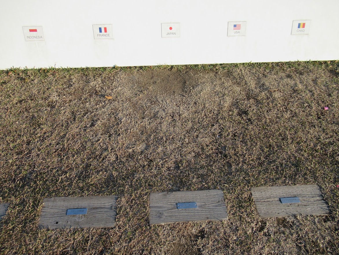看板の裏には立ち位置がちゃんと書かれています。勝手に好きなところに立っちゃいけないんだね。 |