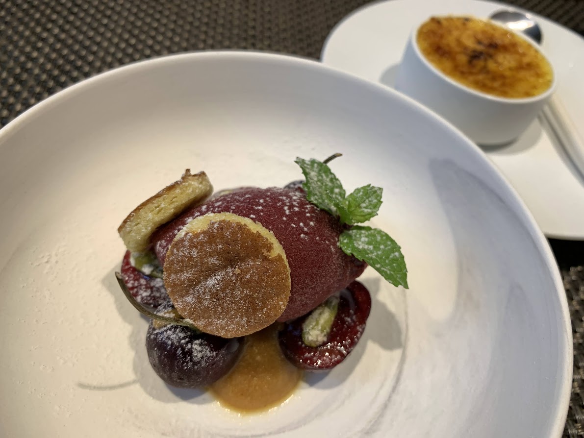 ぶどうのデザートはこの季節限定。ベルギーのアントワープにもパティシエさんんがデザートに合う料理を出しているレストランがあって、ミシュランの☆を獲得しています。そこも見栄えがとてもよかった覚えが。お料理って見た目、だいじだよね。 |