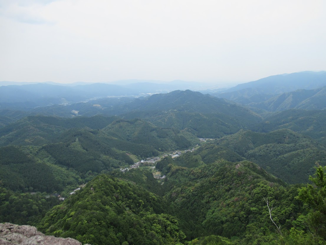 谷に沿って人家が並んでいる様子が見えます。 |