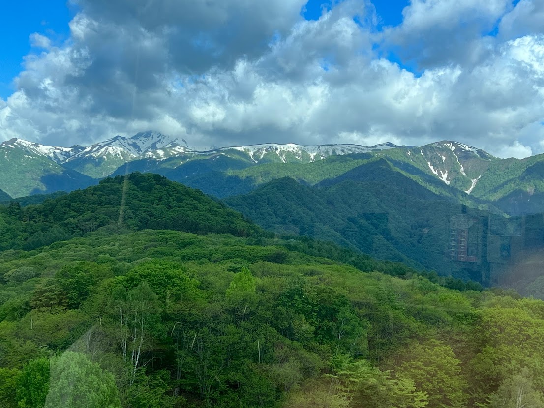 世界最大級の166人乗りロープウエーに乗って山頂まで。湯沢の町並みg一望できます。 |