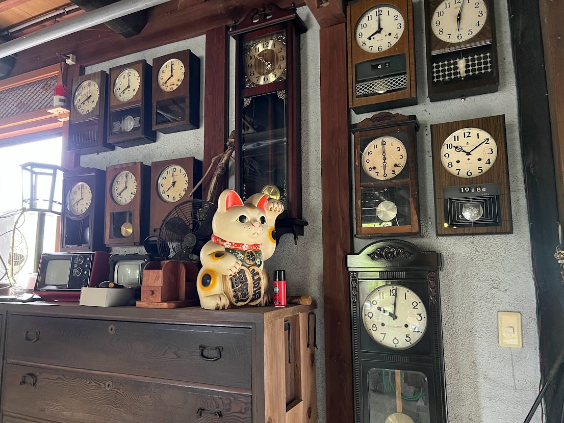 中に入るといろんなアンティークグッズが飾られていました。もらってくるんだーとおっしゃっていたけれど、いやいや、それだけじゃないでしょー |