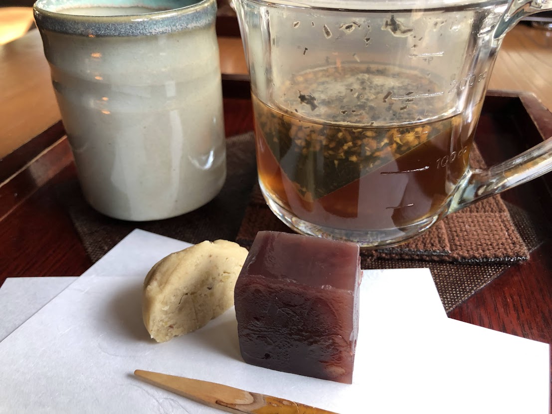 散策の後は移築した古民家をカフェに改装した「蘇山荘」へ。お庭をみながらお茶をいただきます。 |