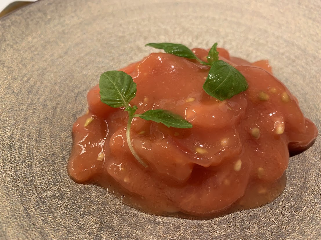 セッタンタのスペシャリテ。高知産徳谷トマトの冷製パスタ。 いつも美味しい。甘ーいよ。 |
