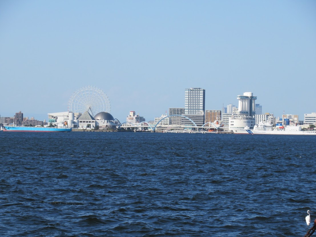 食事のあとは名古屋港にある「名古屋港ワイルドフラワーガーデン ブルーボネット」へ。園内から先週行った港をみるとこんな感じ。 |