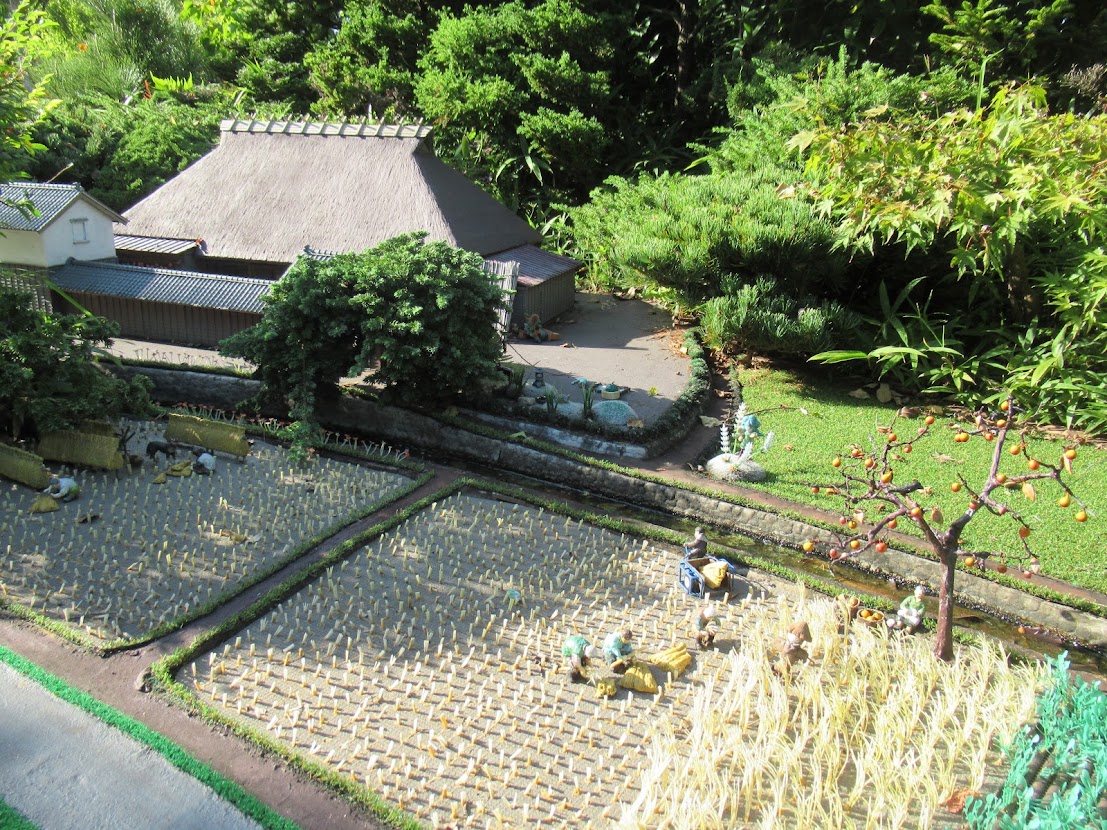 「ジャパニーズスモールワールド」 日本の原風景を楽しめる庭が並んでいます。盆栽仕立ての植物を並べて、狭い庭でも大きな風景を表現できます。どれもとても良く出来ていました。 |