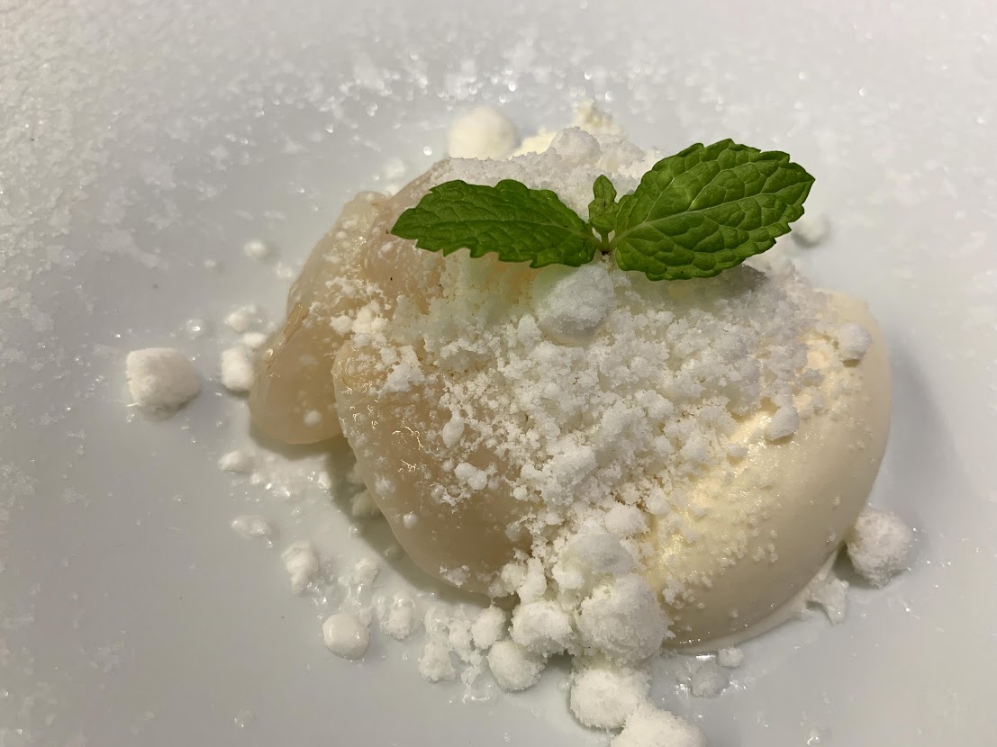 真っ白なデザート。ライチのさわやかさが際だちます。 |
